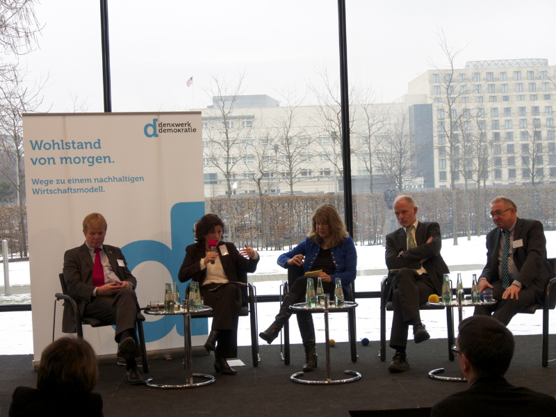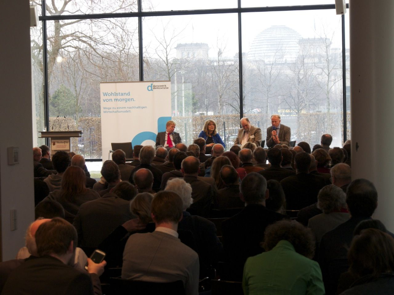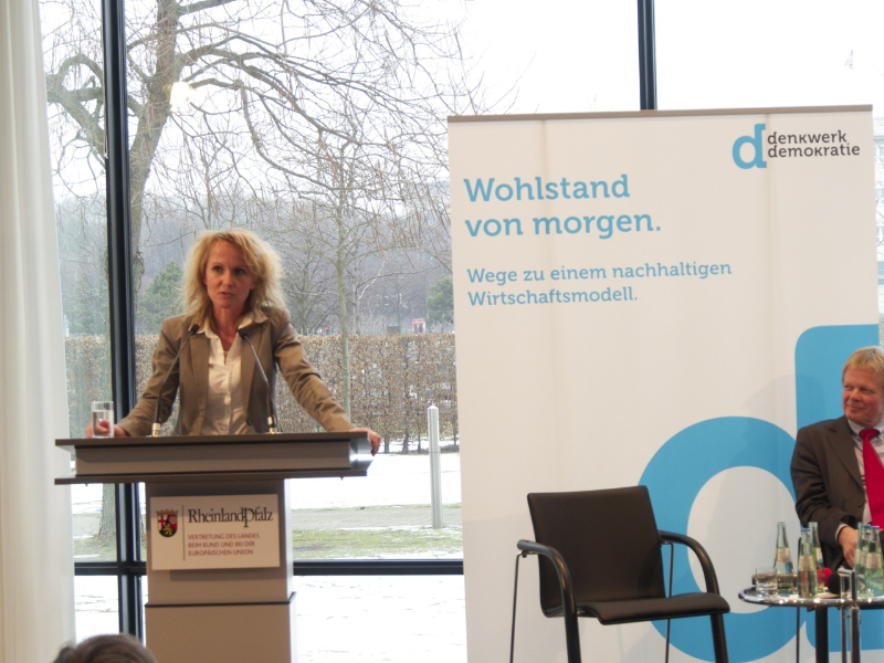 „Wohlstand von morgen. Wege zu einem nachhaltigen Wirtschaftsmodell“ lautete der Titel der ersten öffentlichen Konferenz des Denkwerk Demokratie, die am 14.2. in Kooperation mit der Landesvertretung Rheinland-Pfalz mit rund 300 Teilnehmer/innen aus vielen Bereichen der Gesellschaft stattfand.
