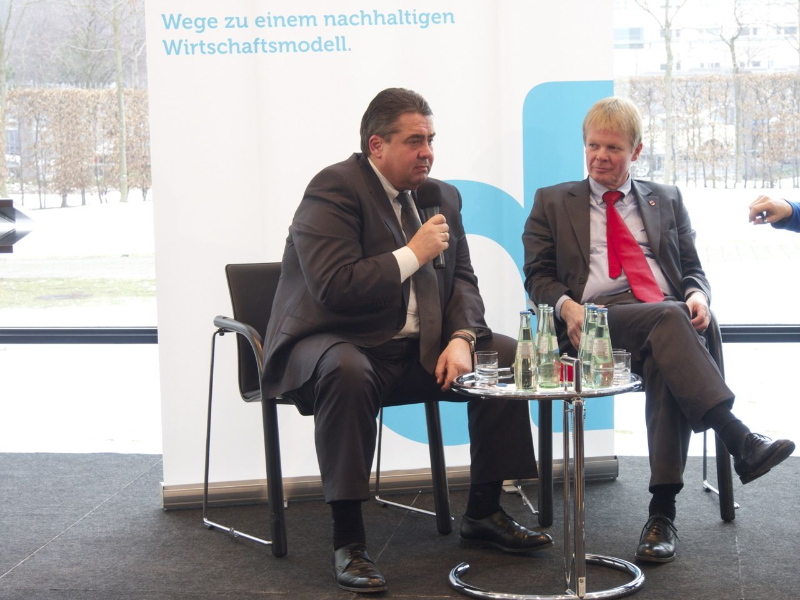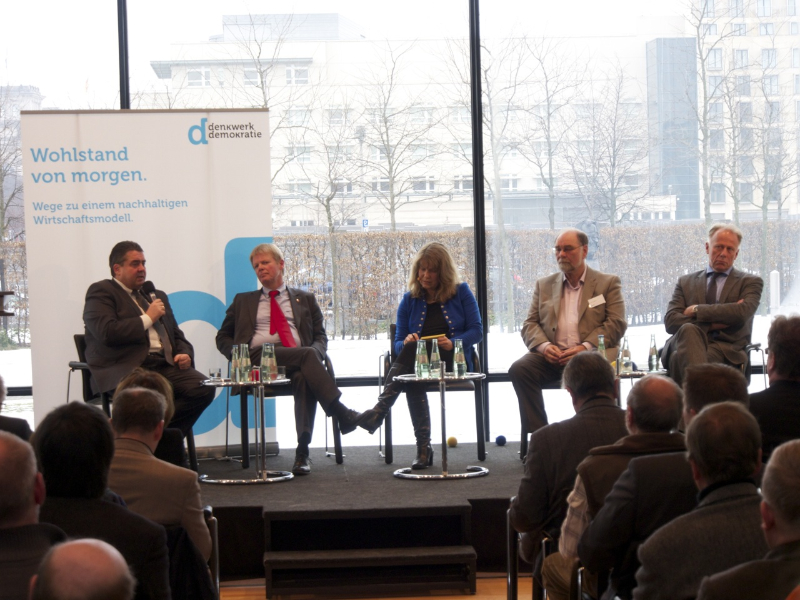 Diese Gedanken wurden in einer zweiten Runde mit Spitzenvertretern aus Politik und Zivilgesellschaft vertieft. Auch zwischen Sigmar Gabriel (Parteivorsitzender der SPD), Jürgen Trittin (Vorsitzender der Bundestagsfraktion und Spitzenkandidat zur Bundestagswahl von Bündnis 90 / Die Grünen), Prof. Dr. Hartmut Vogtmann (Präsident des Deutschen Naturschutzrings) und Reiner Hoffmann (der für den kurzfristig krankheitsbedingt ausgefallen Zweiten Vorsitzenden der IG Metall, Detlef Wetzel, einsprang) gab es Differenzen in Einzelfragen, aber Einigkeit im Grundsatz. Sowohl von Seiten der Politik, als auch der Verbände wurde betont, dass ein neues „Magisches Viereck“ ein taugliches Instrument sein könnte, um wirtschaftspolitische Ziele im öffentlichen Diskurs transparent zu machen und die bestehenden Zielkonflikte in der konkreten Wirtschaftspolitik besser als bislang auszubalancieren.
